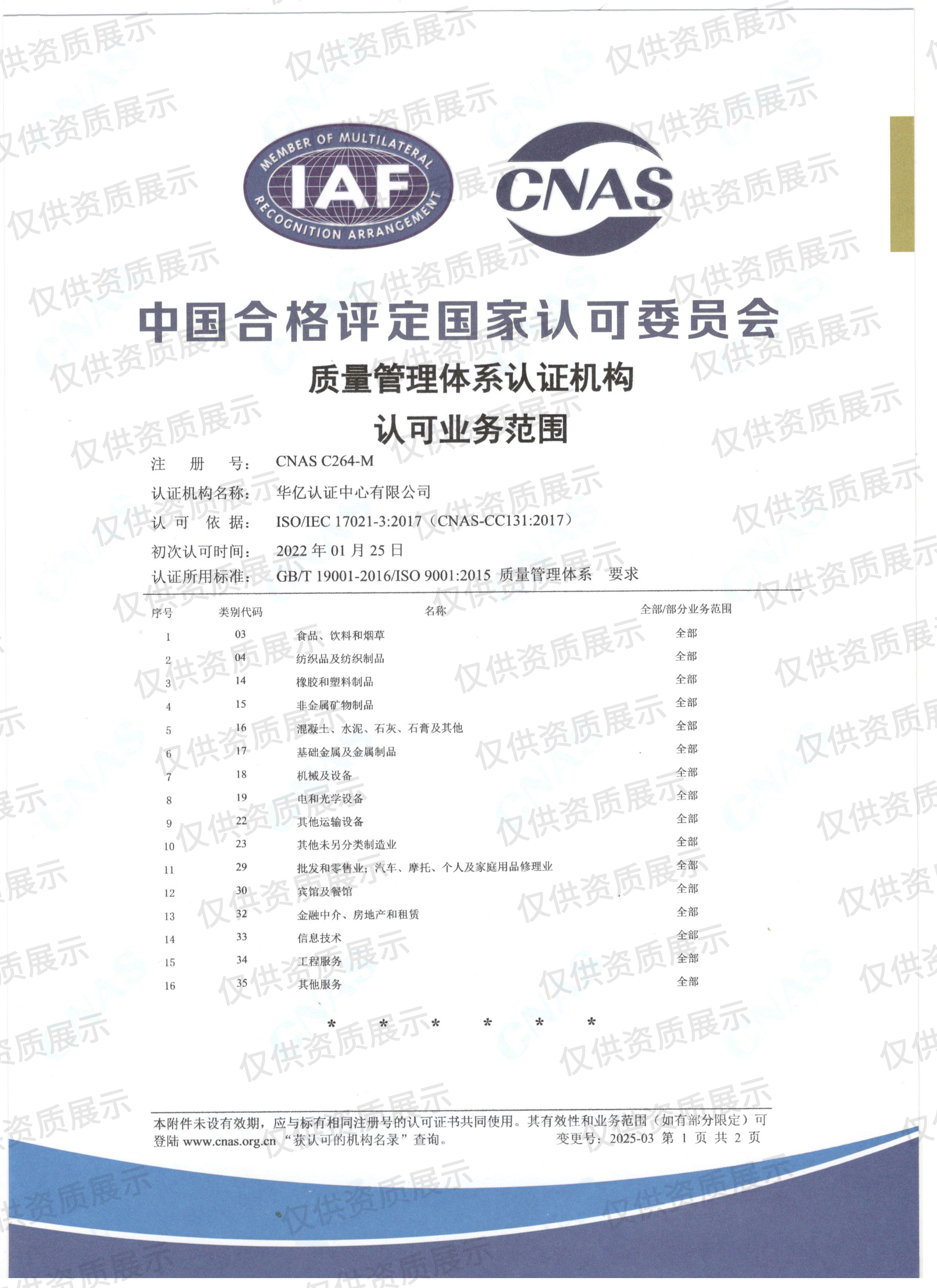 质量管理体系成功扩项!华亿认证中心再获CNAS认可